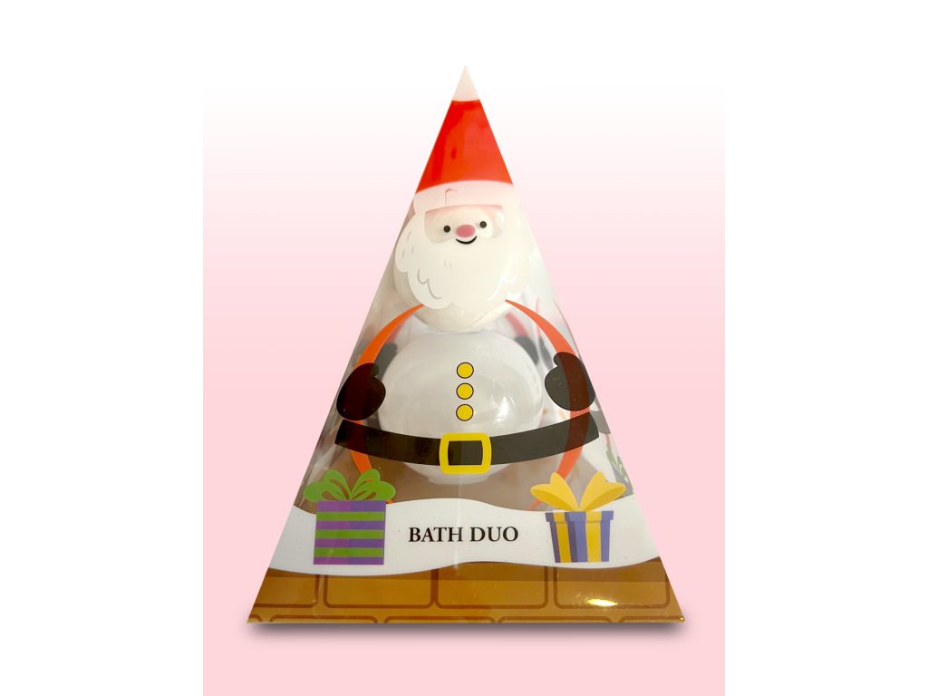 Šumivá koule do koupele a pěna do koupele v krabičce s motivem Santa Clause.