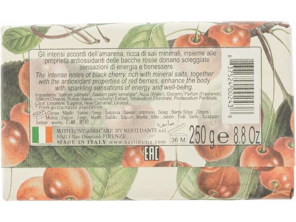 Luxusní přírodní mýdlo s vůní černých třešní a červených plodů.