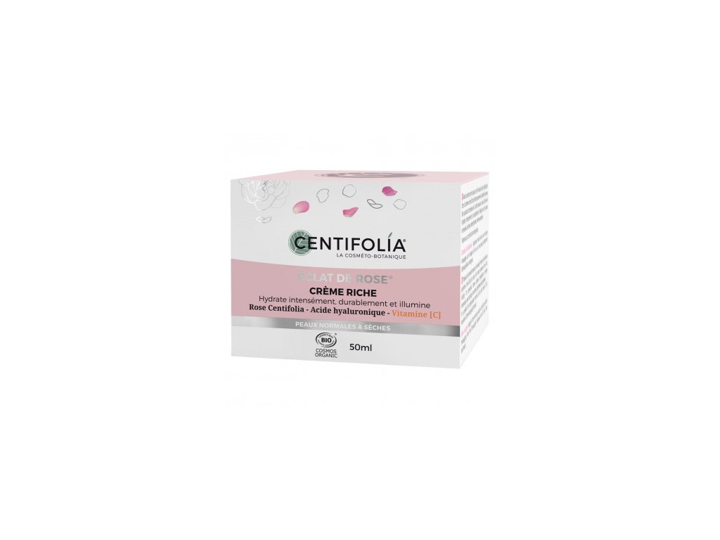Centifolia Éclat De Rose denní pleťový krém Riche udržuje pokožku intenzivně hydratovanou a pleť zářivou. Je ideální pro normální až suchou pokožku, dokonce citlivou. Krém má bohatou a hladkou texturu.