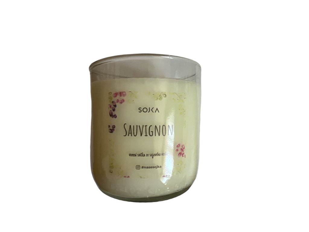 Kvalitní sójová svíce v originální recyklované vinné láhvi navozuje svěží atmosféru díky spojení vůně vyzrálých hroznů připomínající vůni vína Sauvignon.