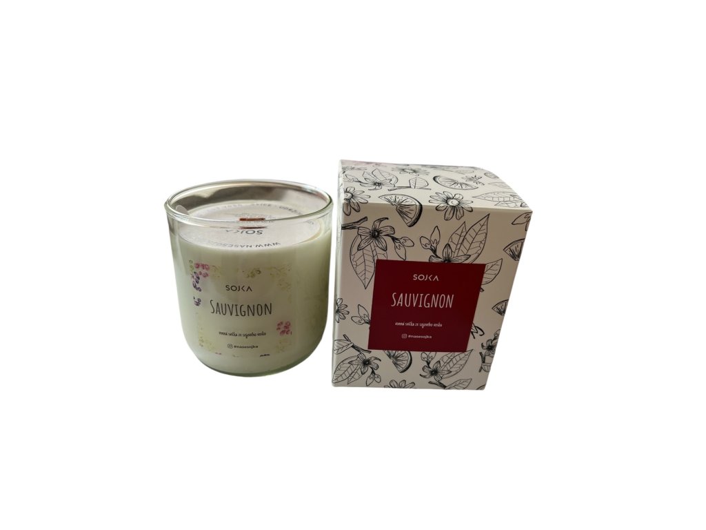 Kvalitní sójová svíce navozuje svěží atmosféru díky spojení vůně vyzrálých hroznů připomínající vůni vína Sauvignon.